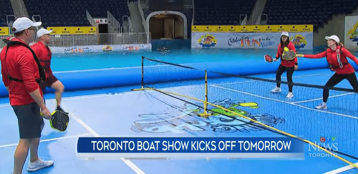 When you think of boat shows, you might not think of pickleball. But it's time to think again because at the 68th edition of the Toronto boat show, there is a pickleball court that’s floating on the world's largest indoor "lake" next to boats and people water skiing.